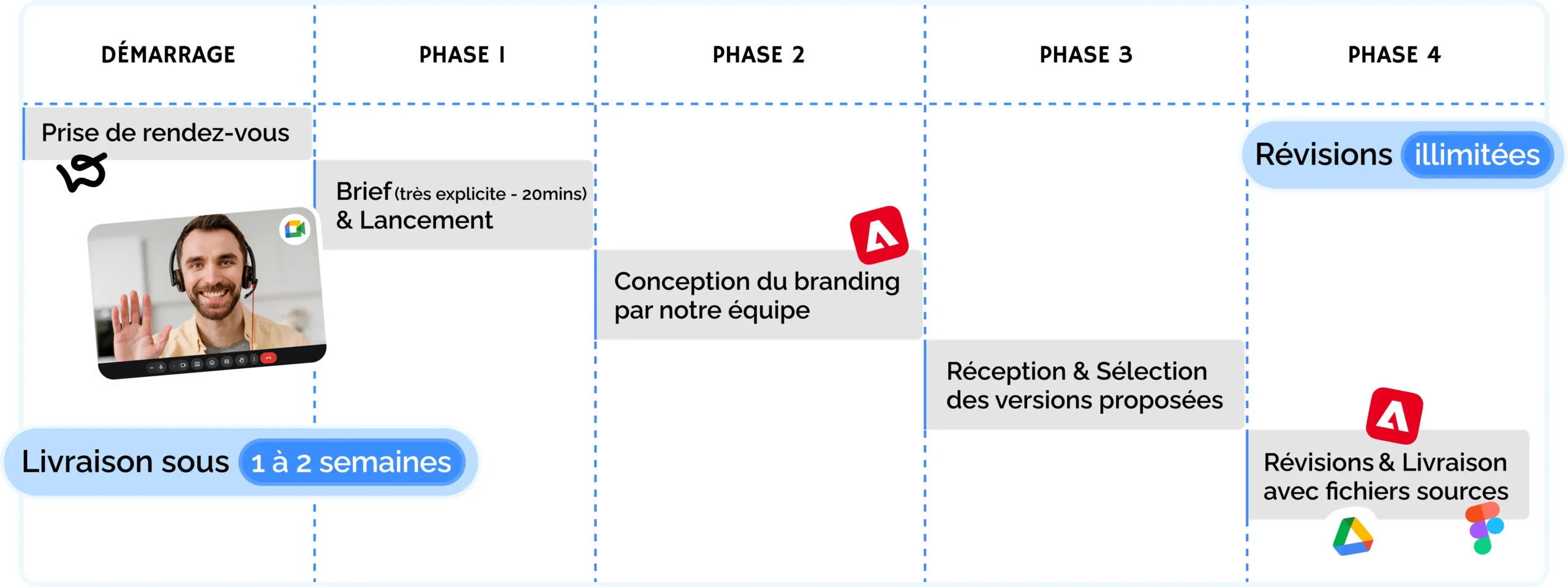 Chaque détail compte. De la conception du logo à la mise en place complète de l’identité visuelle, nous veillons à maintenir une cohérence et une précision irréprochables.