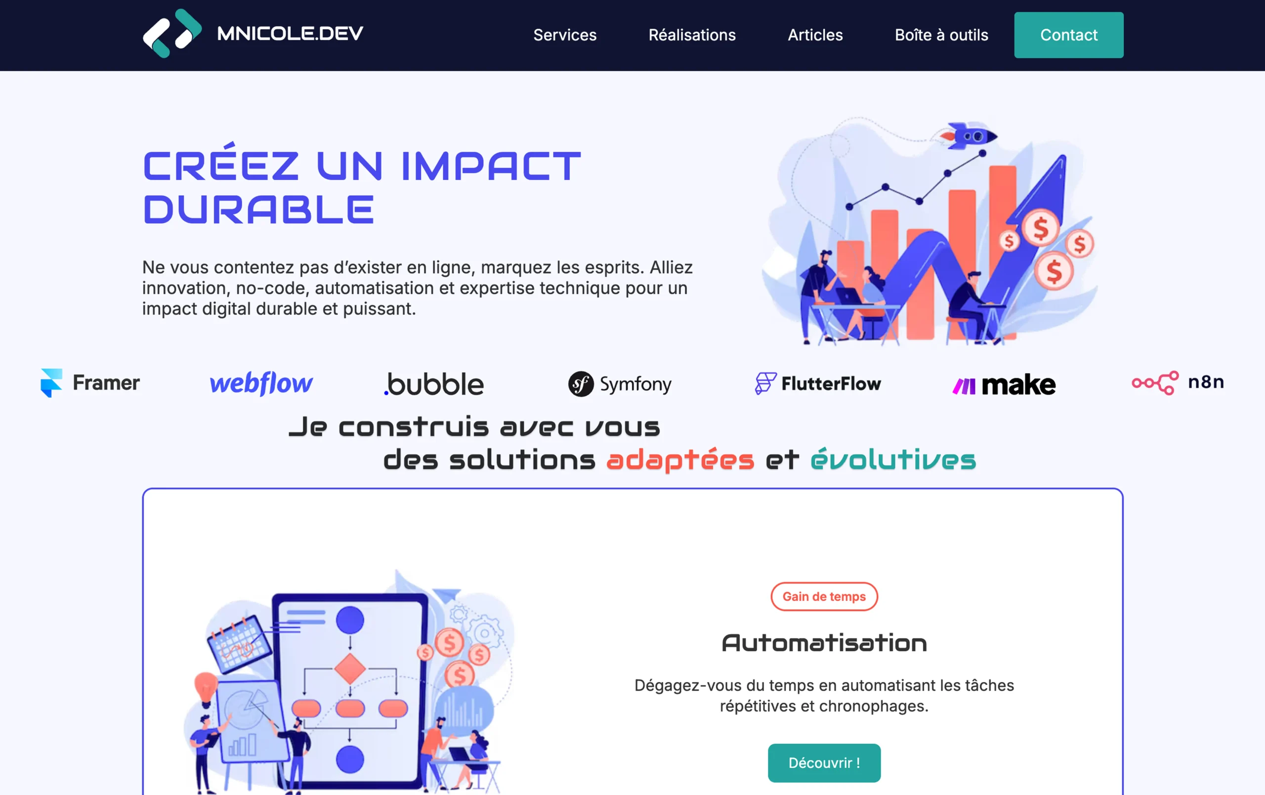 On ne se contente pas de “faire joli”. On clarifie votre message et votre différenciation pour que votre audience comprenne immédiatement qui vous êtes, ce que vous faites et pourquoi vous êtes crédible.